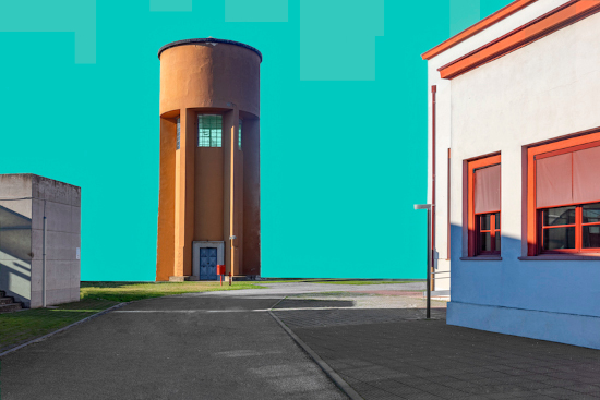 These images were taken in the town of Tresigallo in the province of Ferrara, whose construction by the architect Rossoni, in the 1930s, constituted an experiment in rationalist architecture. There is a metaphysical atmosphere that is well linked to that historical period. I wanted to recreate the spirit of that era in my image. The style I chose is illustrative and the images were digitally enhanced in order to obtain a metaphysical effect through color and the distribution of volumes.